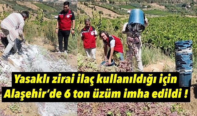 Soner VATANSEVER / alaşehir Manşet Haber - Manisa İl Tarım ve Orman Müdürlüğü ekipleri, Alaşehir’de gerçekleştirdikleri rutin denetimlerde bir üzüm tarlasında yasaklı zirai ilaç kullanımını belirledi. Bunun üzerine, 12 dekarlık alanda üretilen 6 ton üzüm, halk sağlığını korumak amacıyla tarlada toplanarak imha edildi.