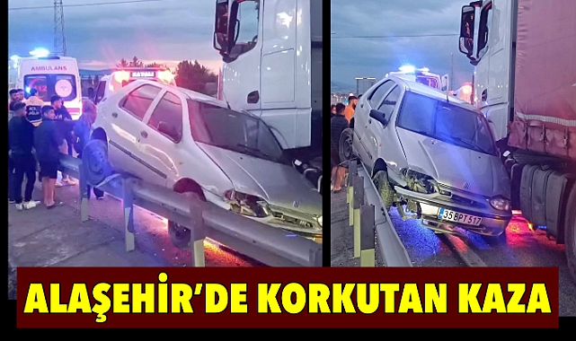 Soner VATANSEVER / Alaşehir Manşet Haber - Kaza, Barış Mahallesi Borsa Kavşağı mevkiinde meydana geldi. Sarıgöl istikametinden Alaşehir yönüne gitmekte olan 35 BPT 517 plakalı otomobil, yağışlı havaya bağlı olarak sürücüsünün direksiyon hakimiyetini kaybetmesi sonucu aynı yönde seyir halinde olan 34 FBK 855 plakalı tıra sağ ön tarafından çarptı.